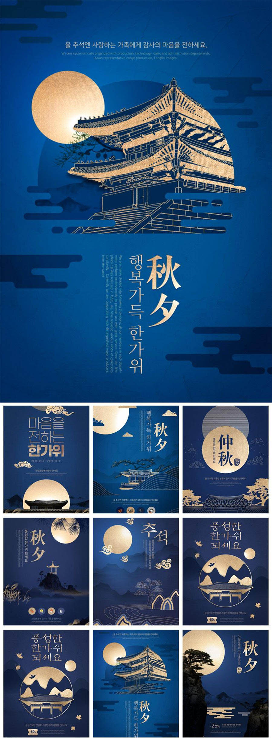 国风建筑山水剪纸剪影中秋节秋夕创意元素海报模板PSD素材设计