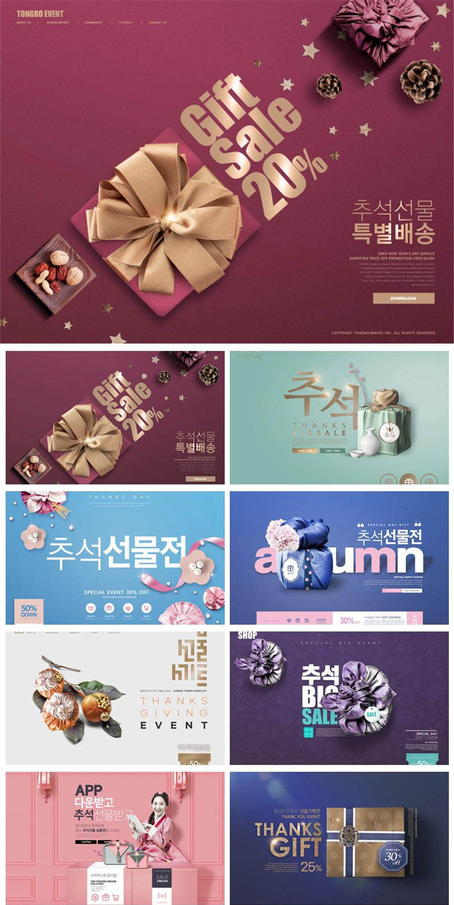 中式国风电商购物活动促销礼品盒创意元素海报PSD模板素材设计