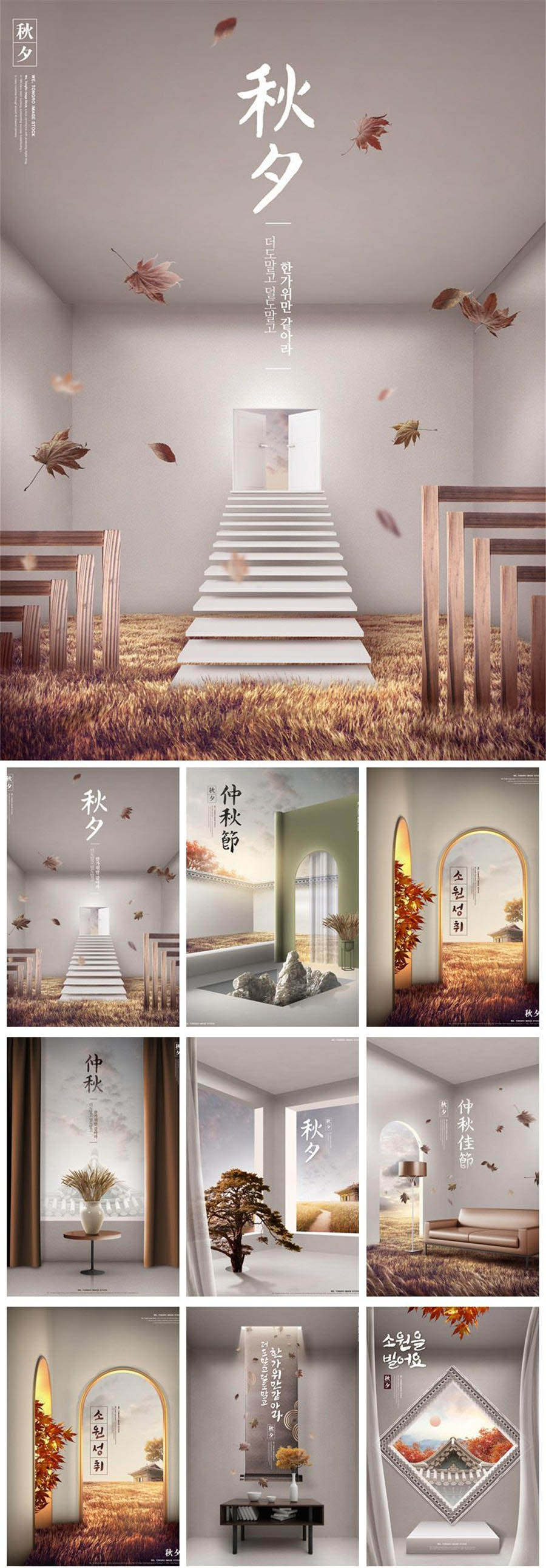 中式景观国风房地产山水建筑中秋节创意元素海报模板PSD素材设计