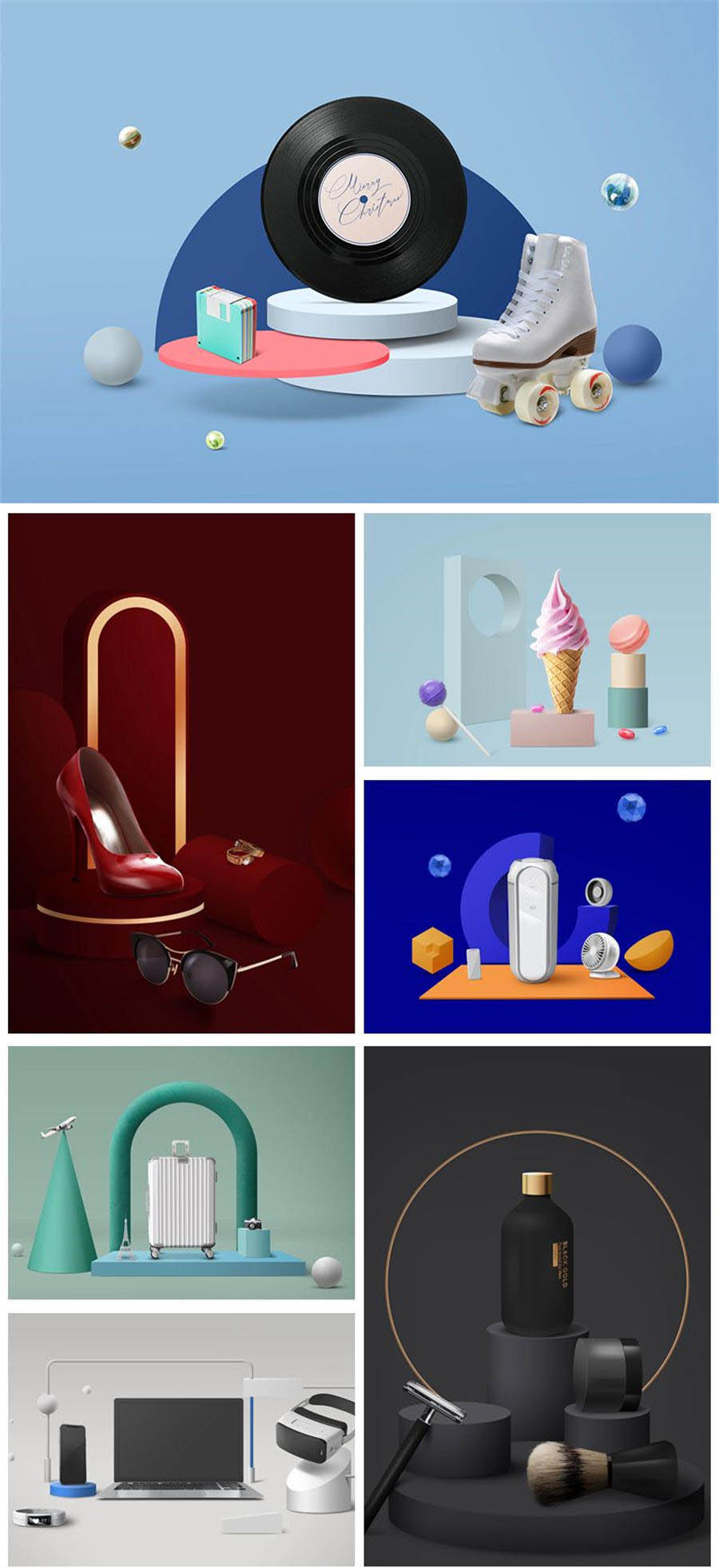 7款电商产品陈列立体场景元素PSD素材
