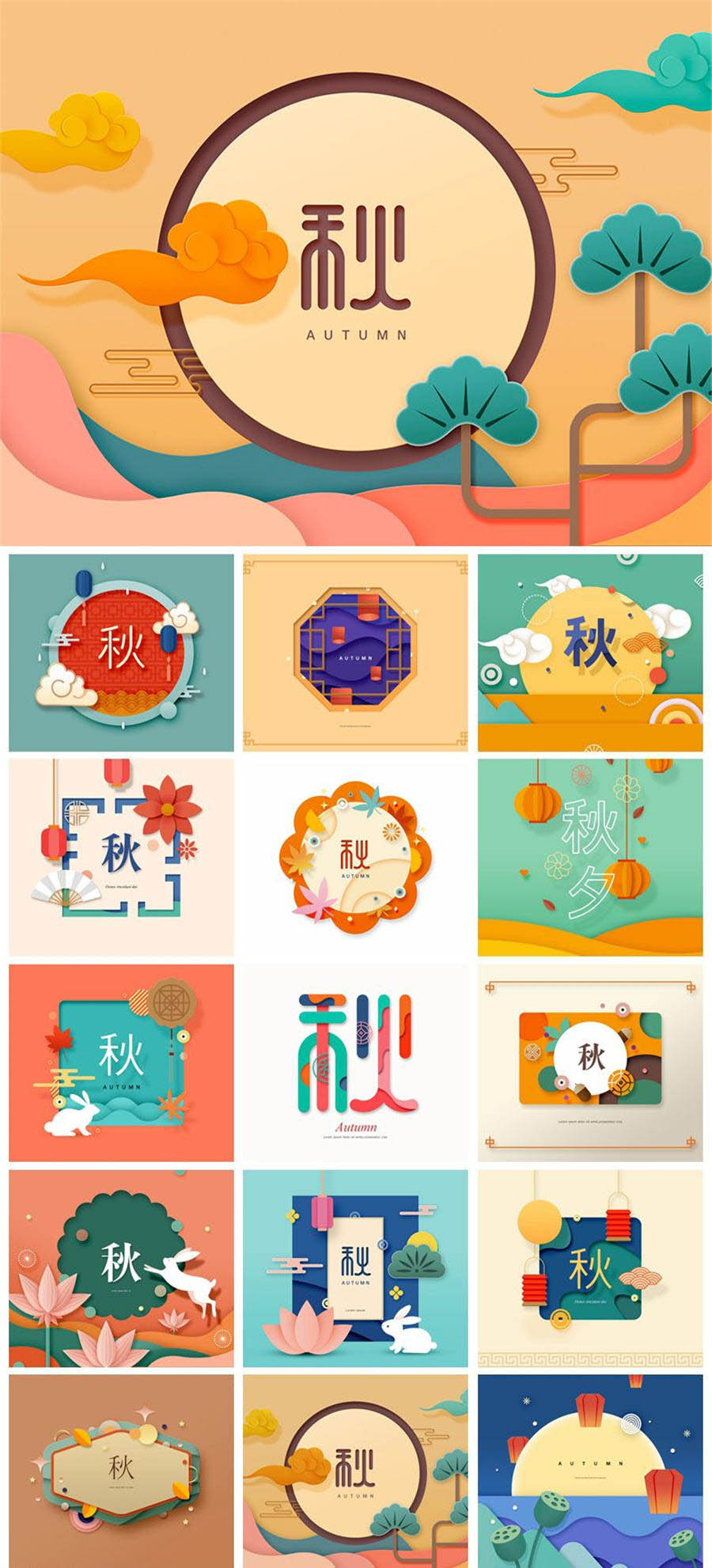 15款中式中国风剪纸风格中秋节海报PSD素材