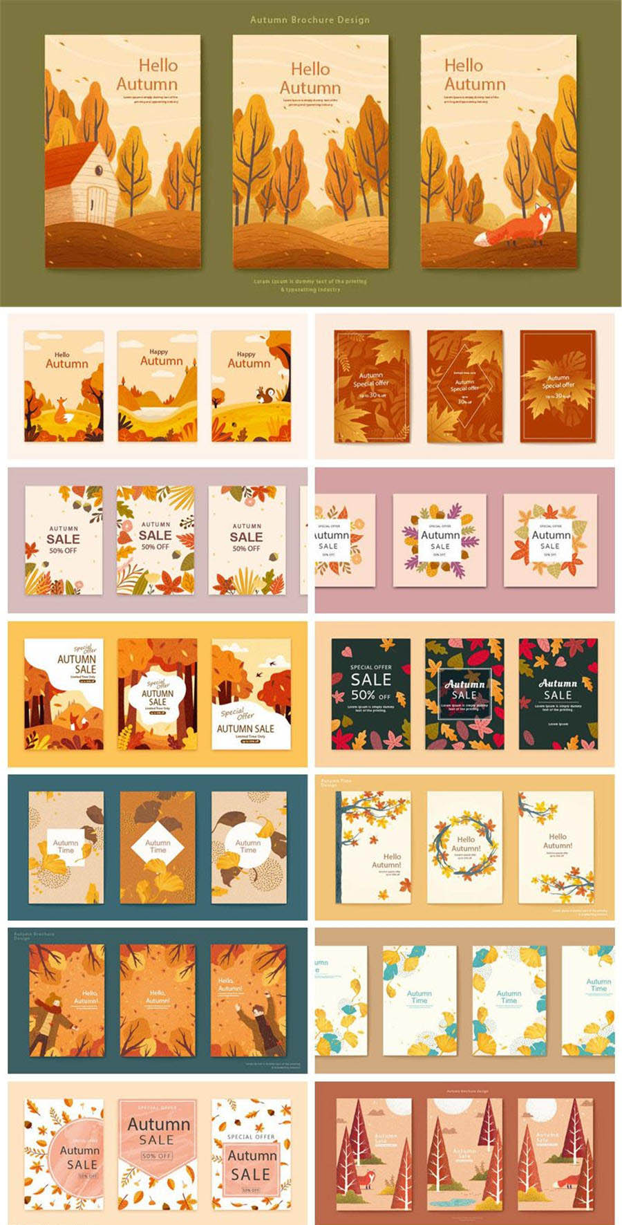 秋天秋季风景枫叶落叶森系插图插画创意元素海报AI模板素材设计