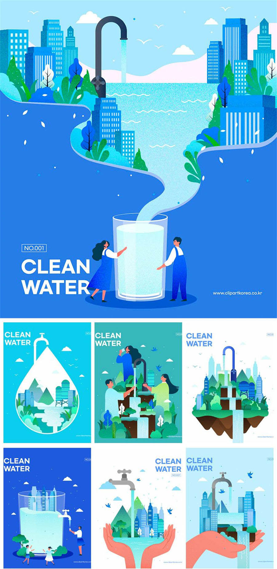 保护水资源节约用水环保公益插图插画创意元素海报AI模板素材设计