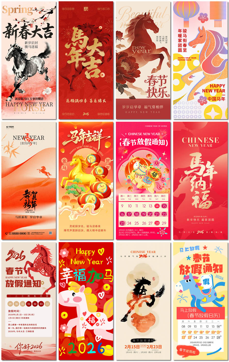 春节马年2026新年放假通知过年除夕小年货PSD海报设计元素材模板