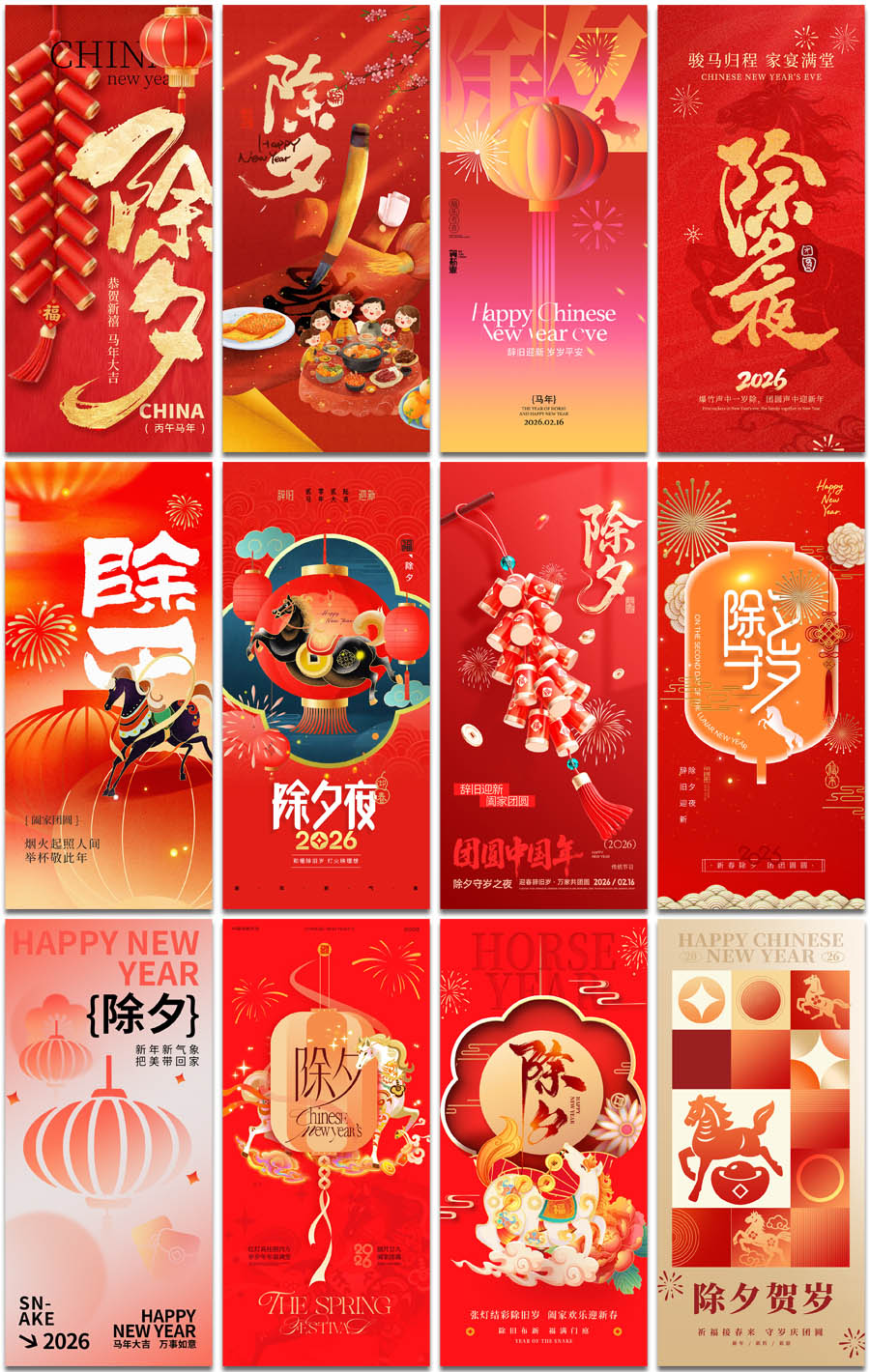100张除夕海报PS格式模板素材设计