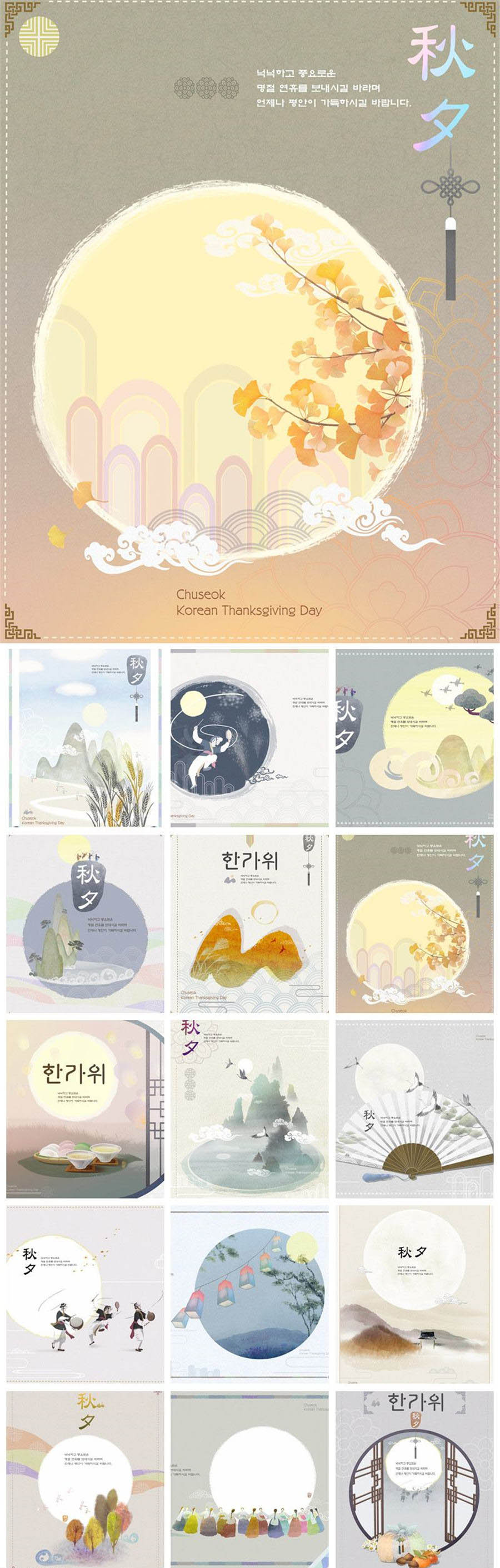 中式国风中秋节月圆山水习俗月亮创意元素PSD海报模板素材设计
