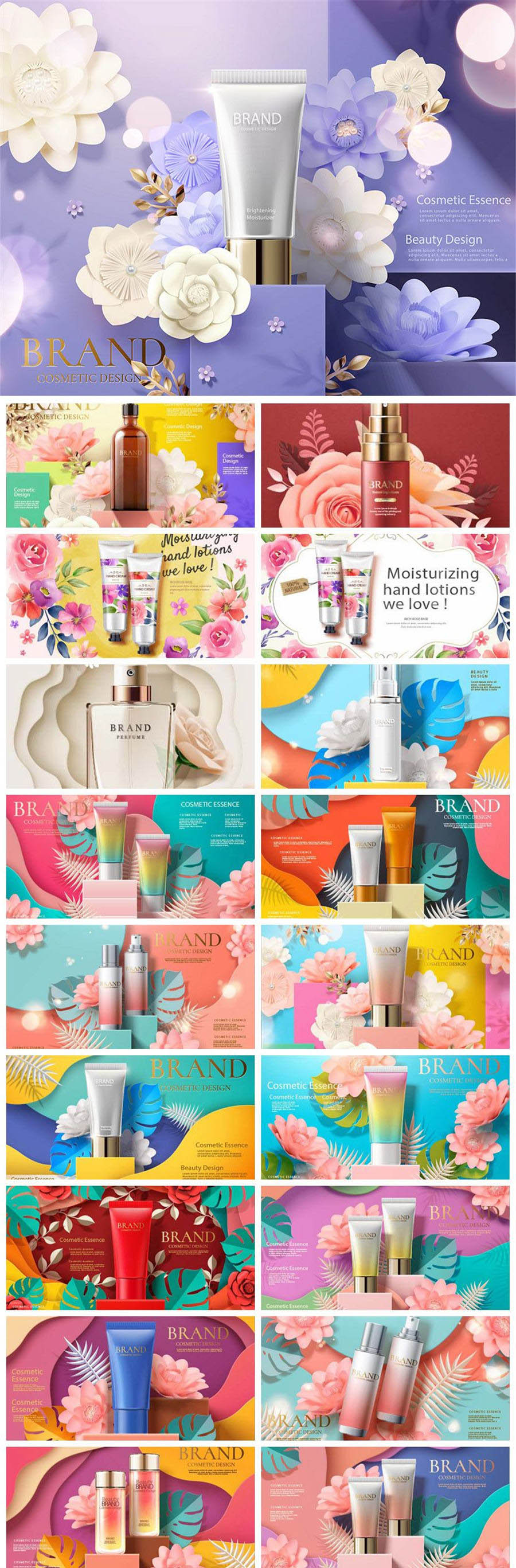 19款剪纸风格化妆品保养品护肤品AI素材