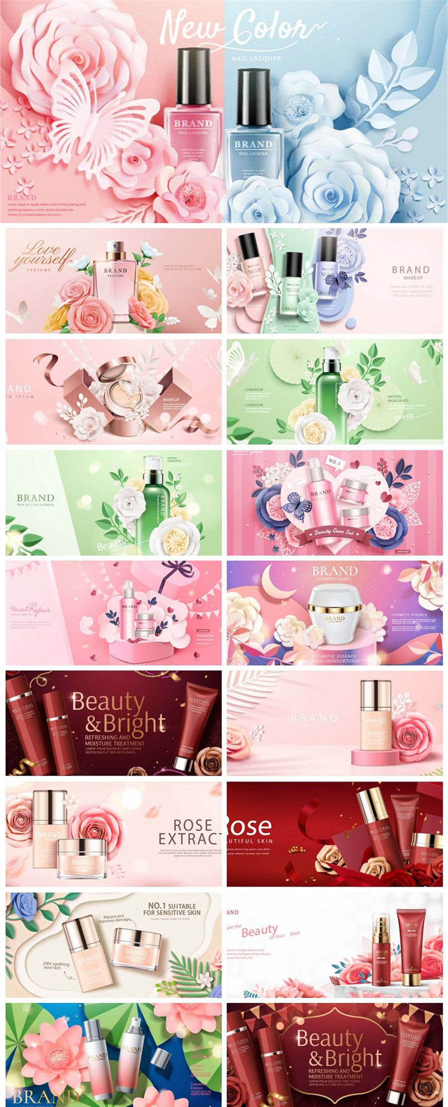 17款剪纸风格化妆品保养品护肤品AI素材