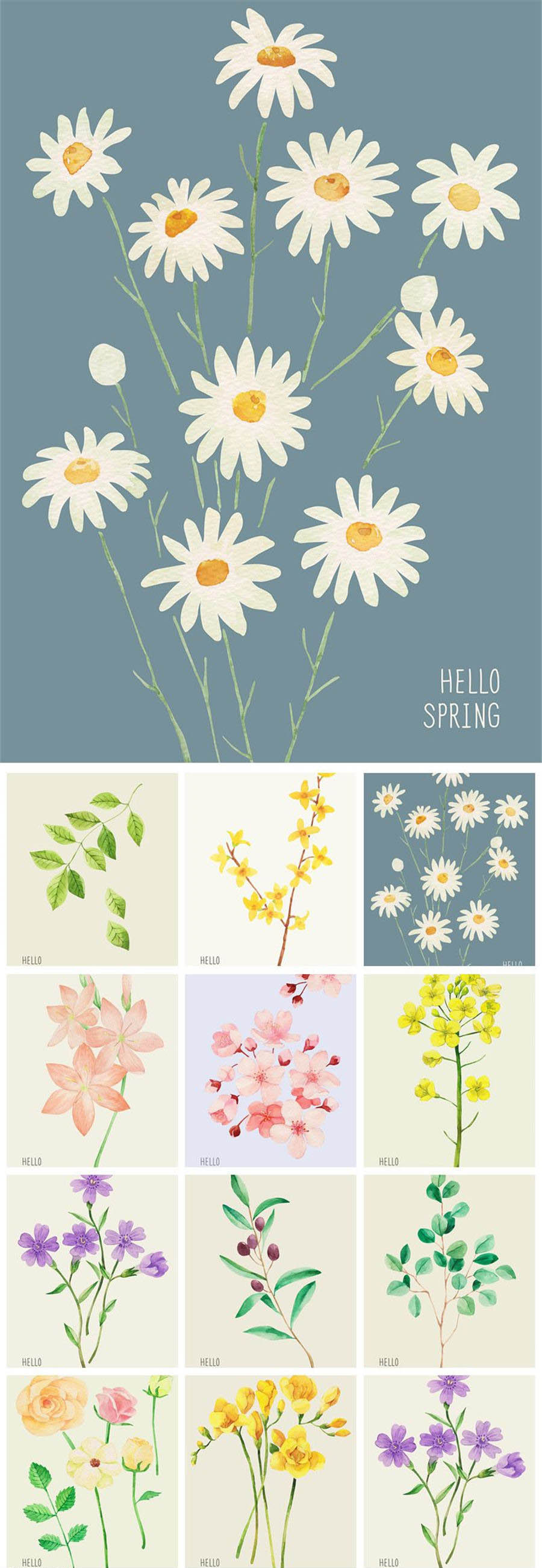 手绘树叶花朵花卉植物野花植物插画创意元素海报模板素材PSD设计