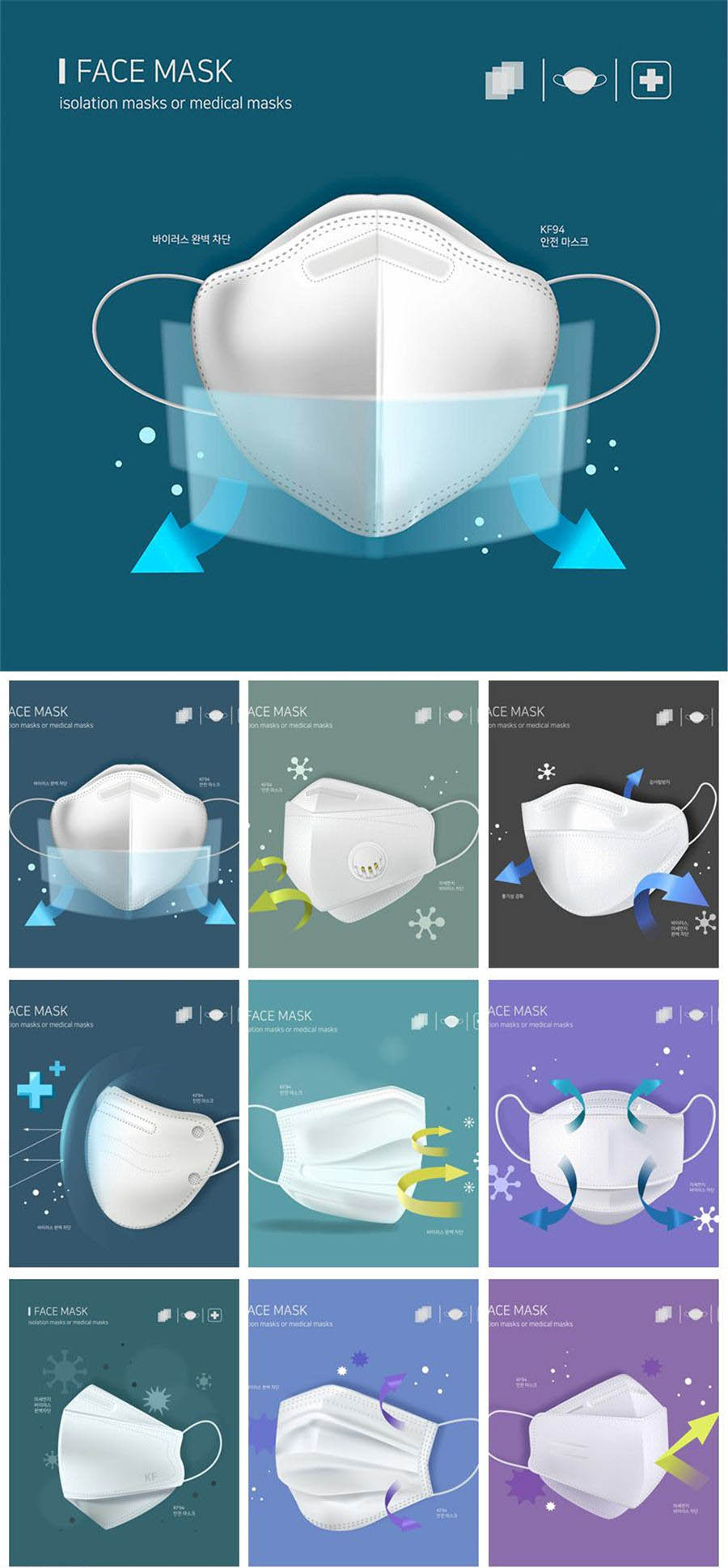 医疗口罩流感防护细菌医用kf94口罩创意元素AI海报模板素材设计