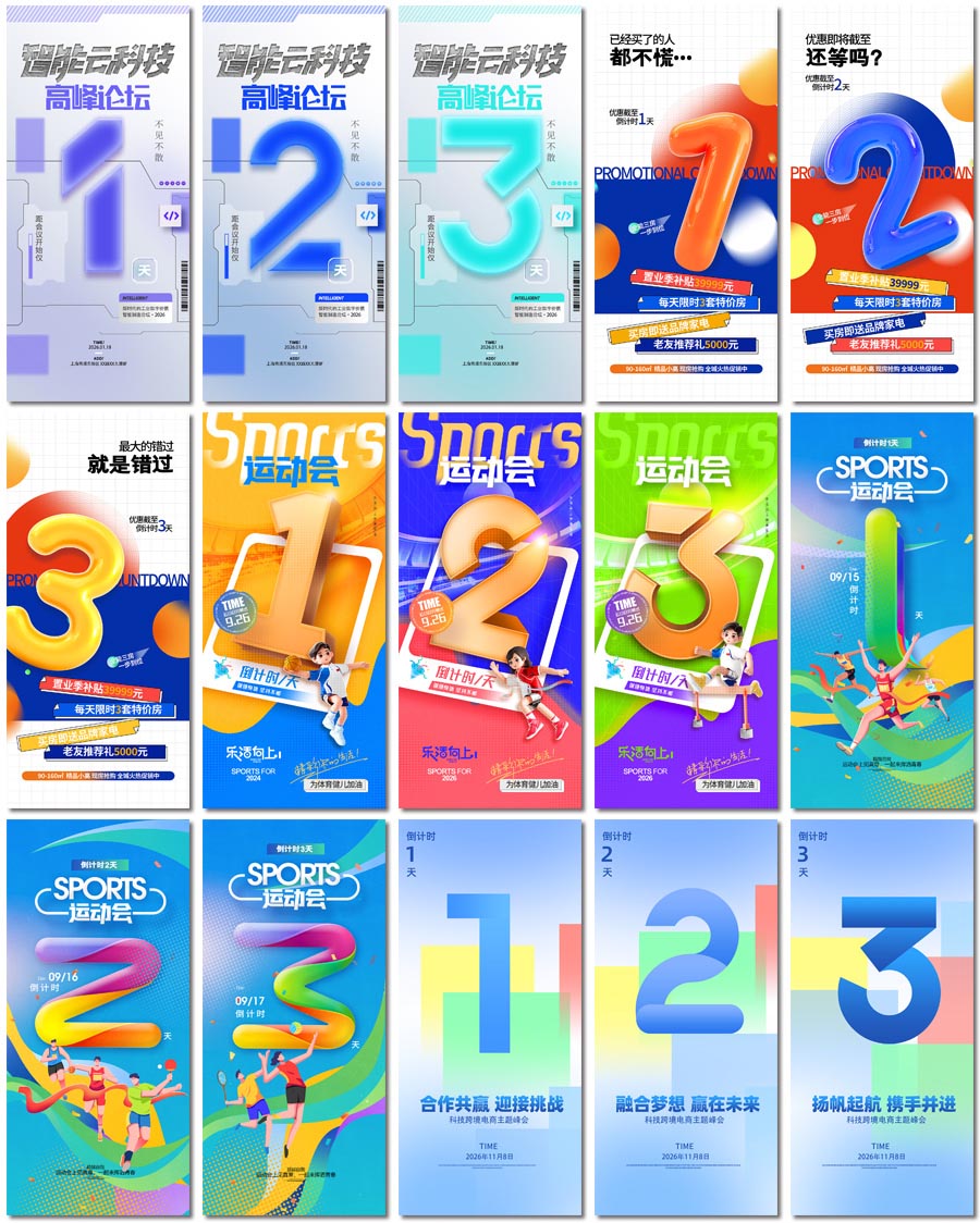 100张倒计时海报PS格式模板素材设计