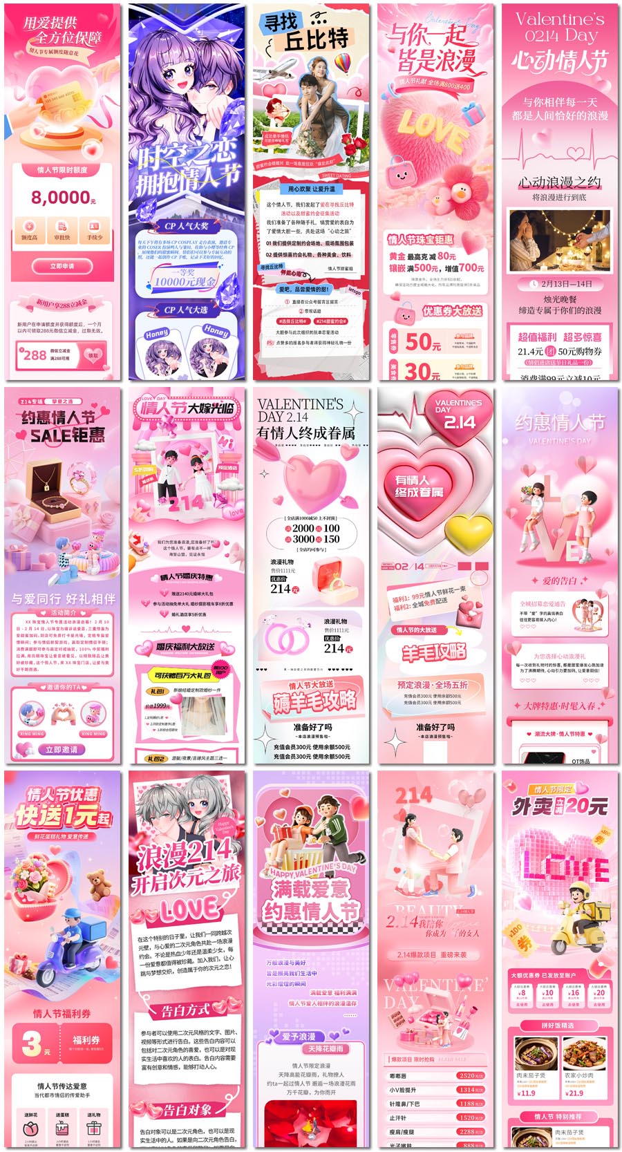 80款情人节长图海报PS格式模板素材设计