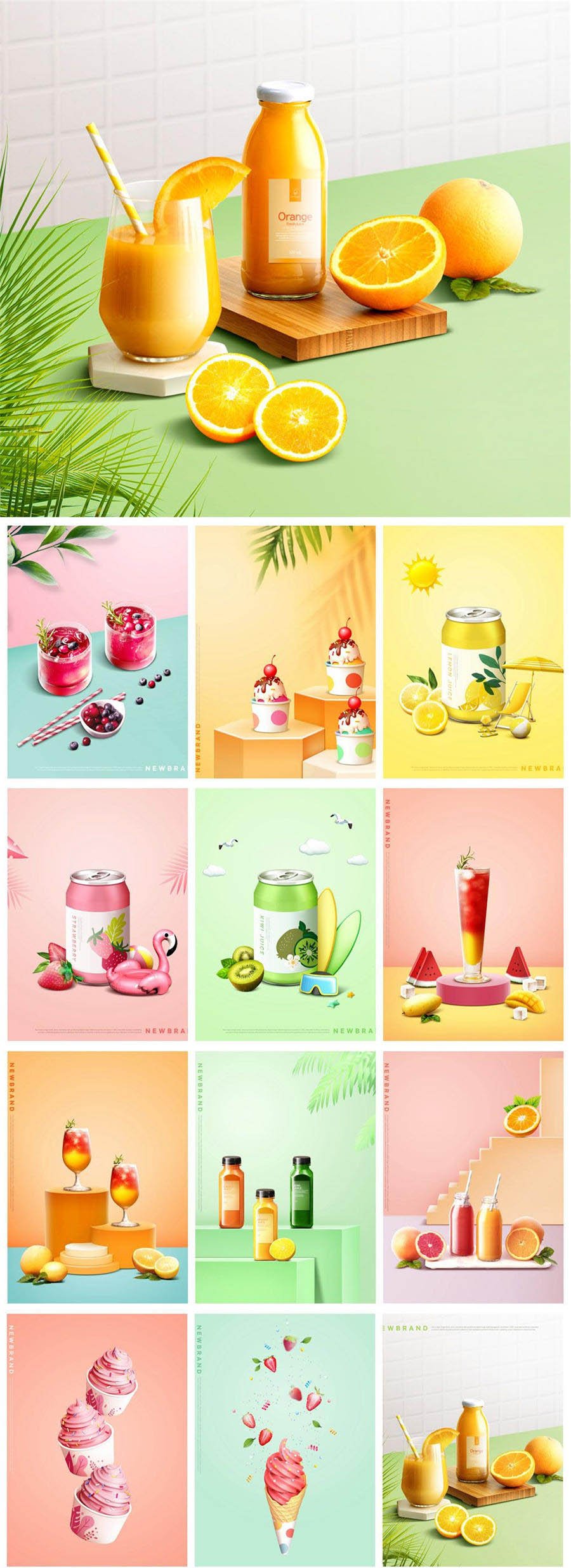 12款果汁饮料冰淇淋奶茶PSD素材