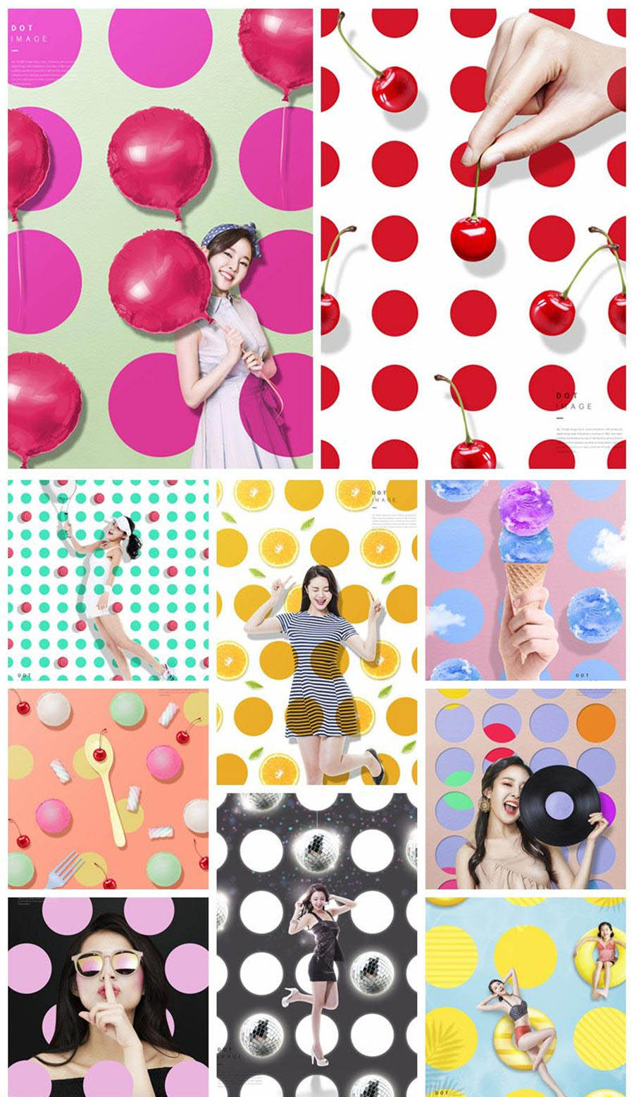 炫彩底纹点点斑点水果音乐甜品背景创意PSD元素海报模板素材设计