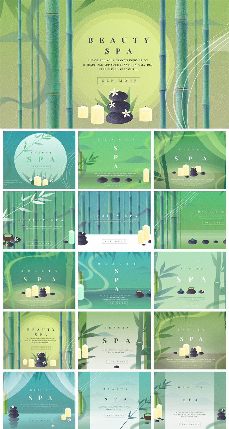 禅意竹子端午节竹叶蜡烛spa按摩美容创意元素PSD海报模板素材设计