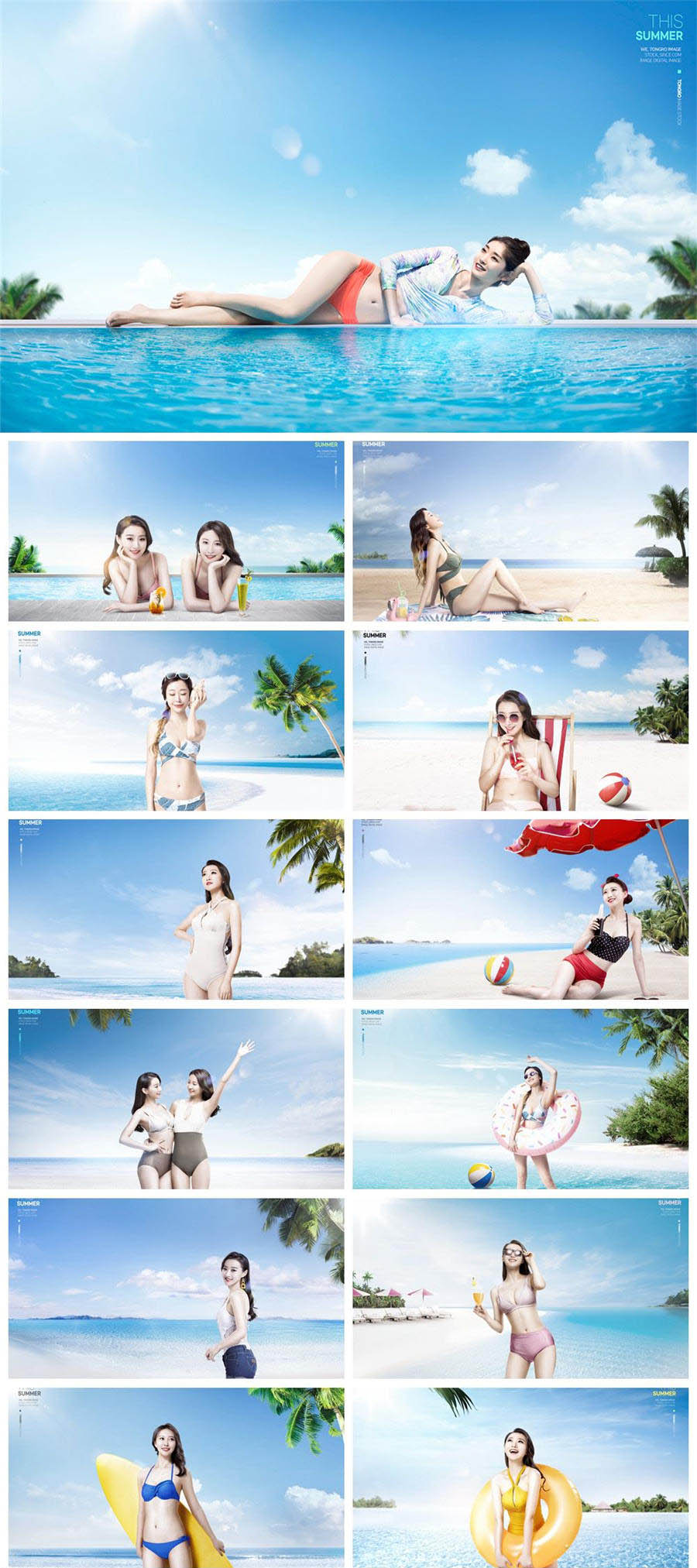 13款冰爽夏日沙滩大海游泳度假PSD素材
