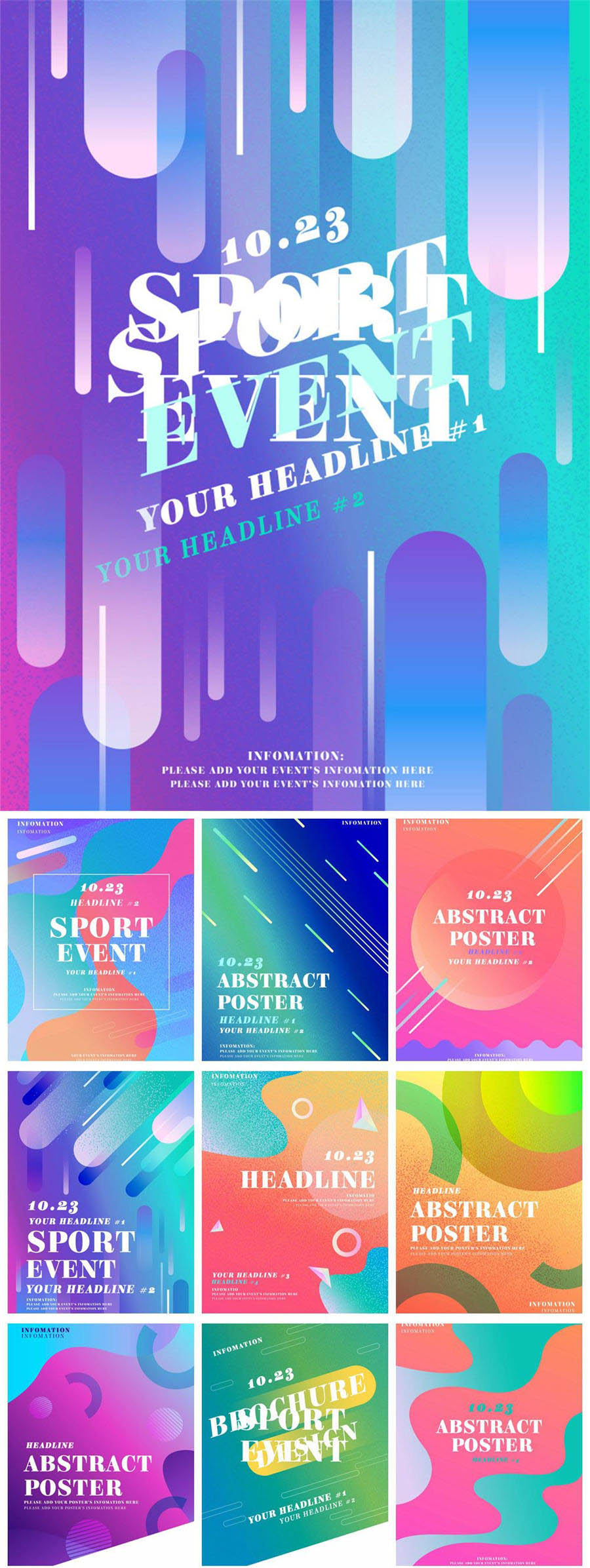 22张时尚炫彩渐变色彩流体彩虹糖果色系背景矢量纹理vi印花素材模板