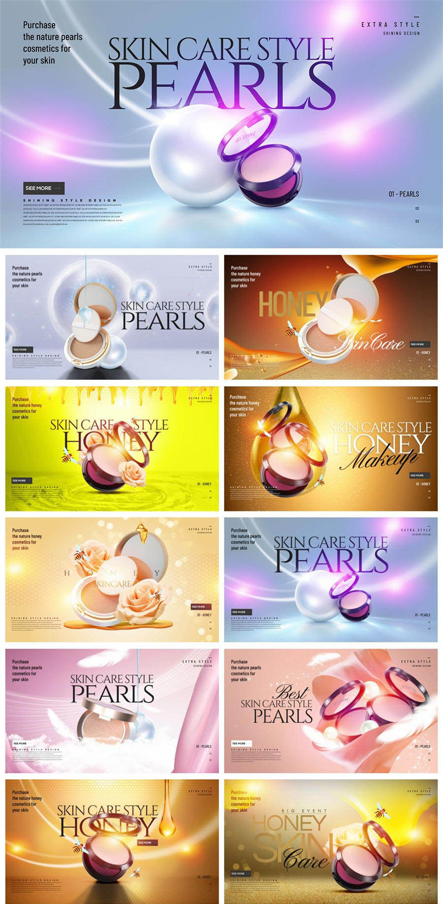 10款化妆品保养品护肤品蜂蜜精华胶原蛋白-3PSD素材