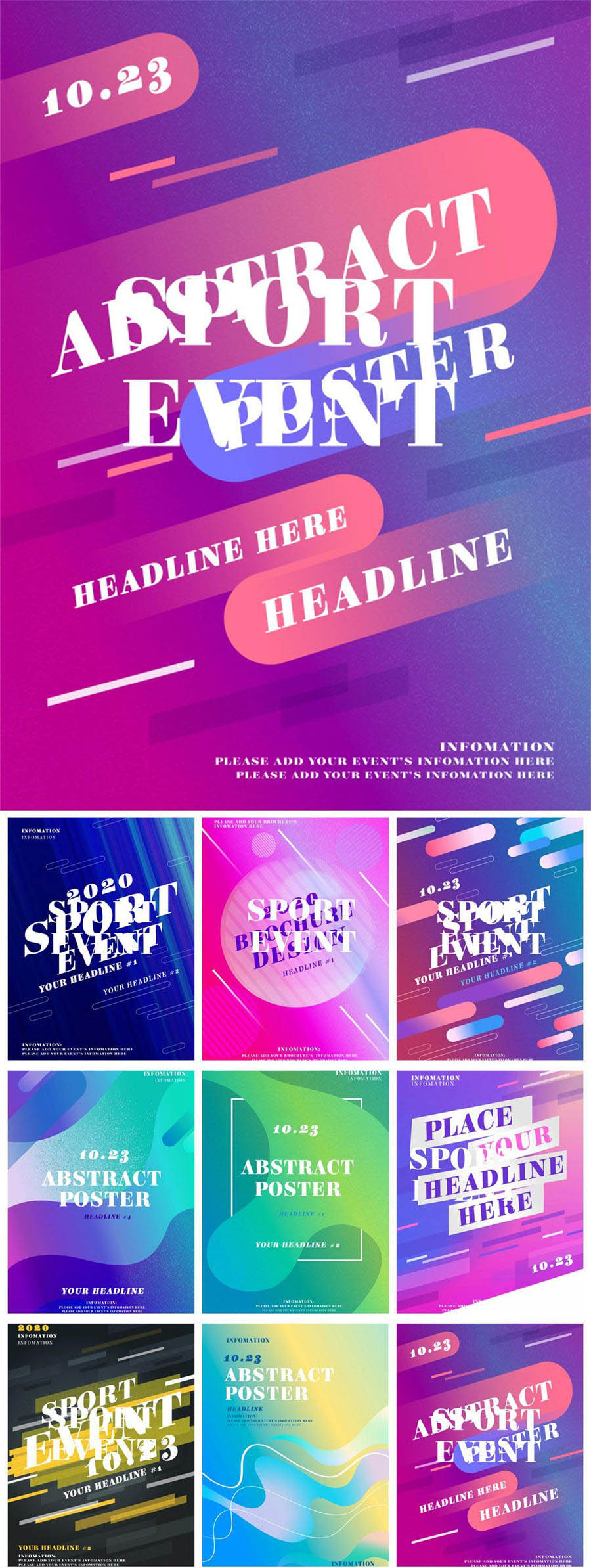 22张时尚炫彩渐变色彩流体彩虹糖果色系背景矢量纹理vi印花素材模板