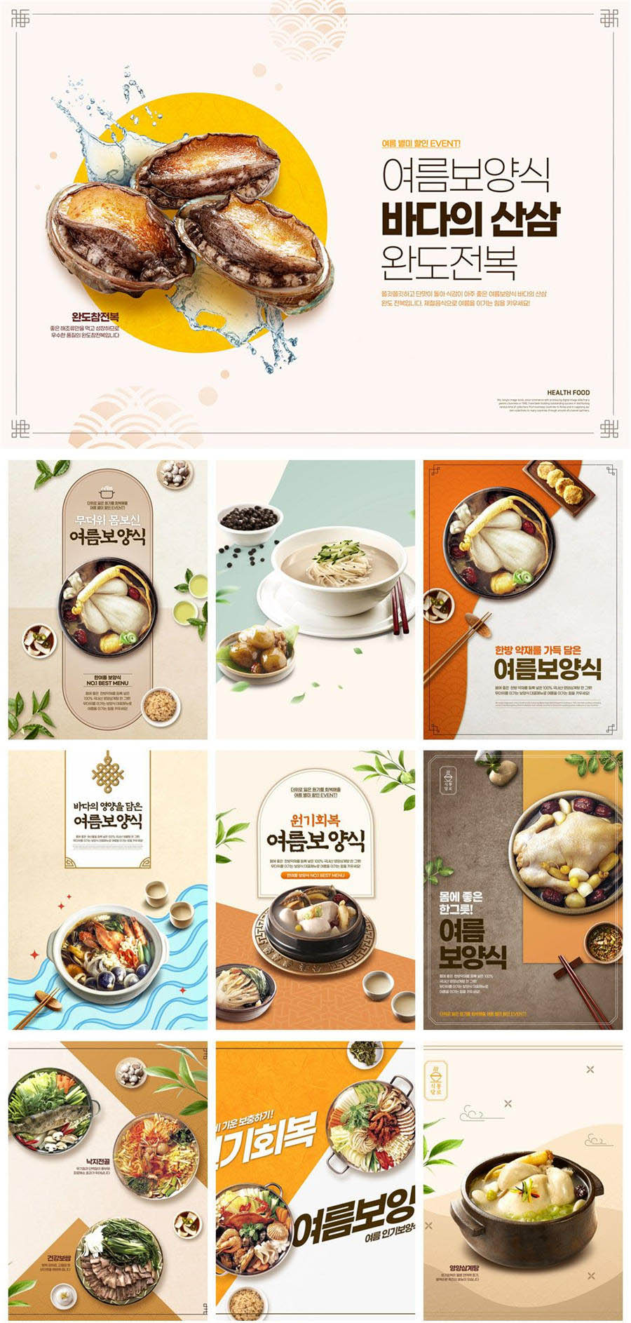 餐饮美食鲍鱼海鲜煲鸡汤面韩国料理创意元素海报PSD模板素材设计