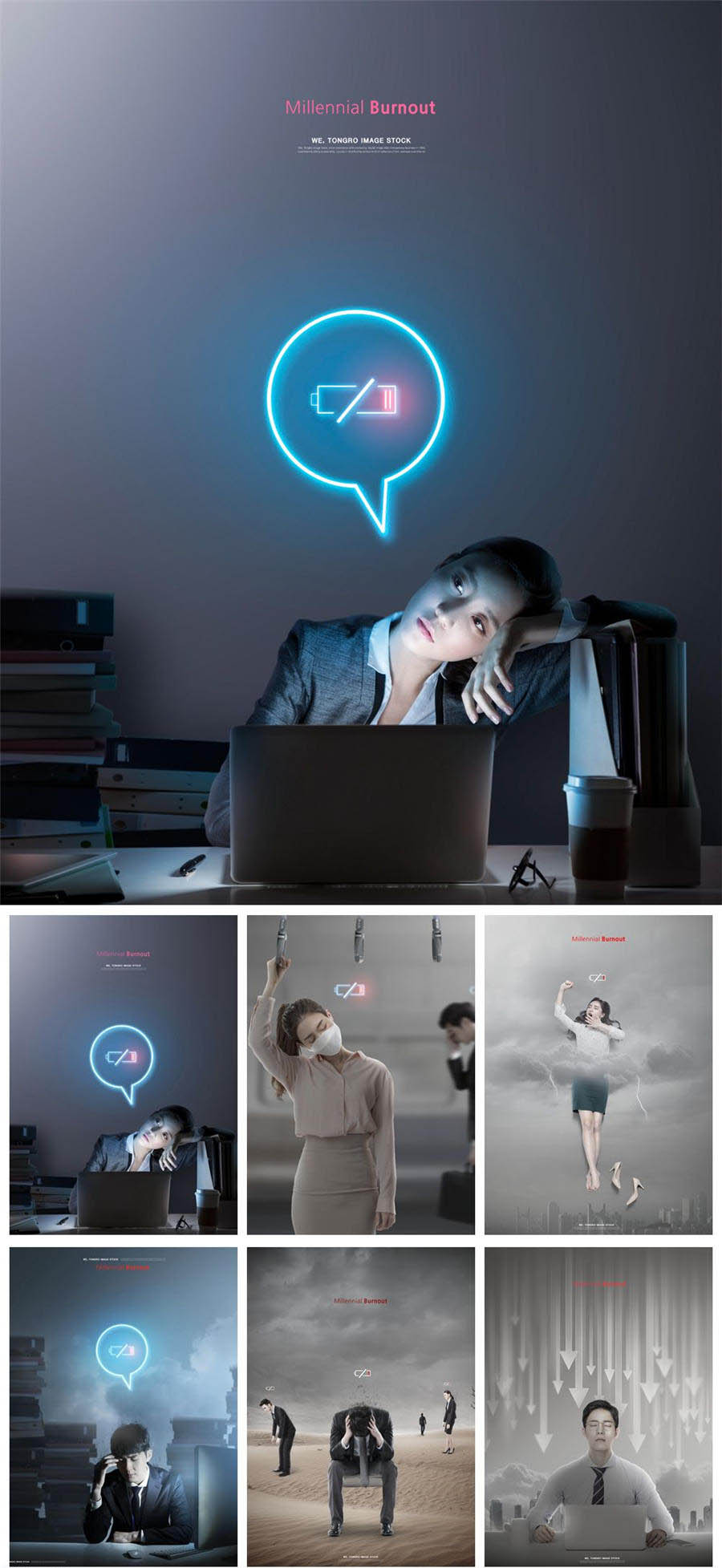 6款商务白领工作压力PSD素材