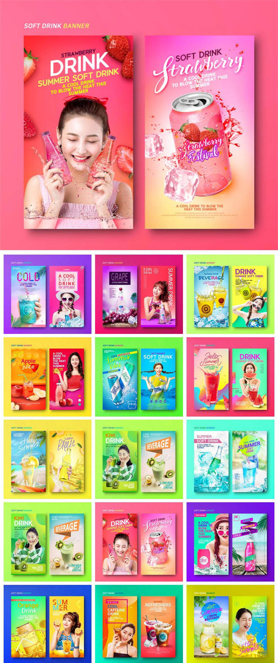 14款夏日冰爽水果果汁饮料网页海报PSD素材