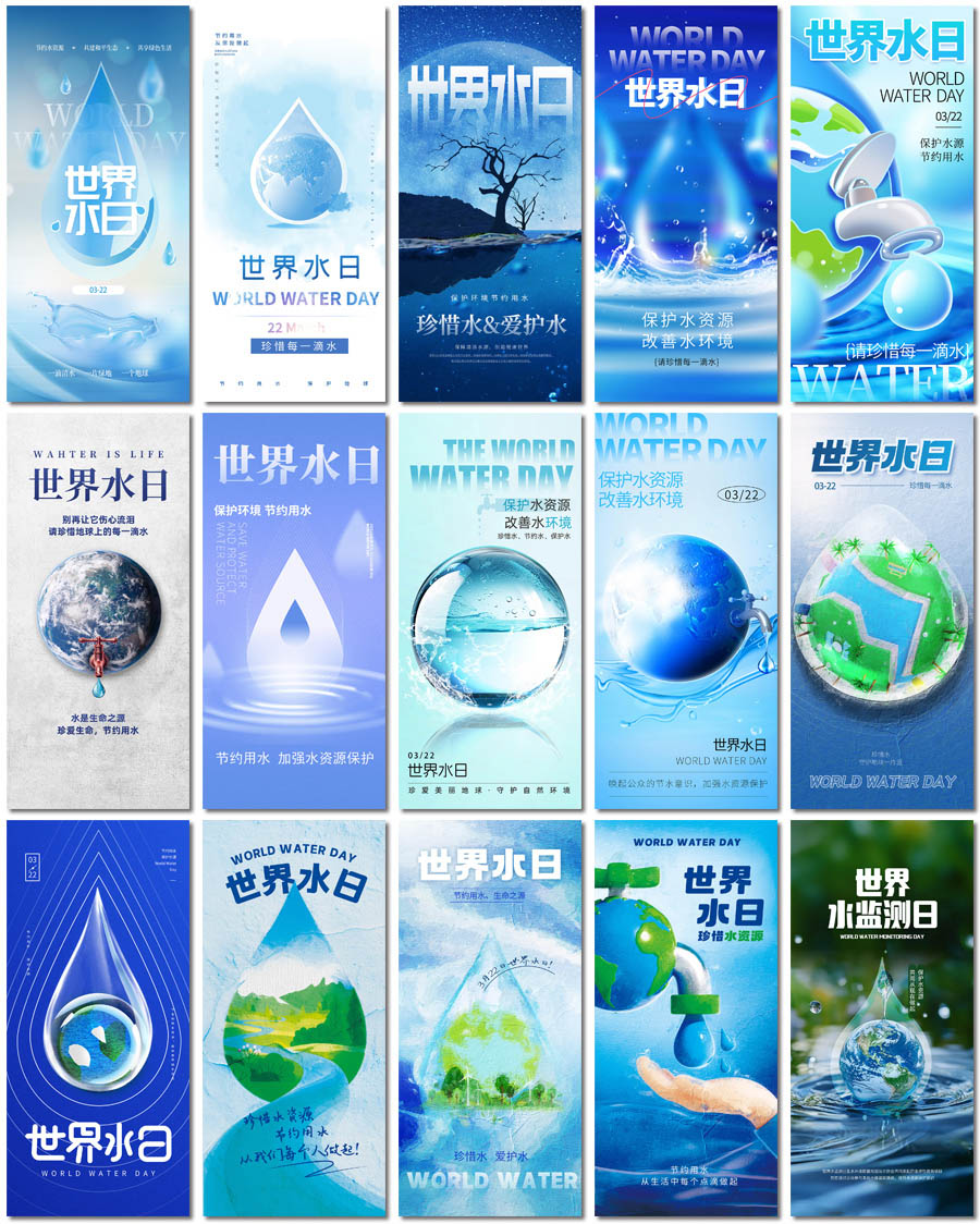 世界水日水监测日水质节约用水保护水资源PSD海报设计元素材模板