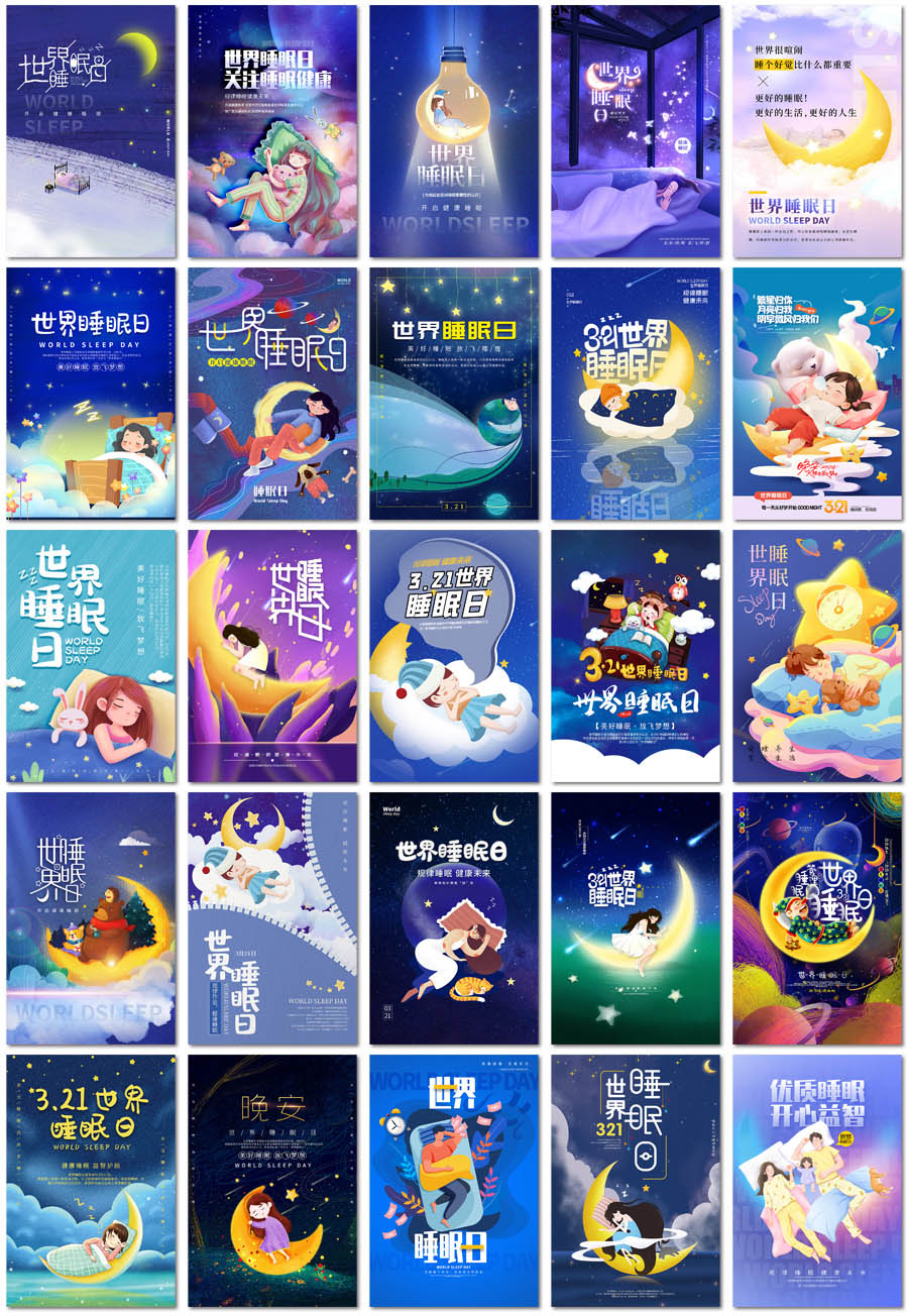 世界睡眠日夜晚晚安你好日签励志儿童公益PSD海报设计元素材模板