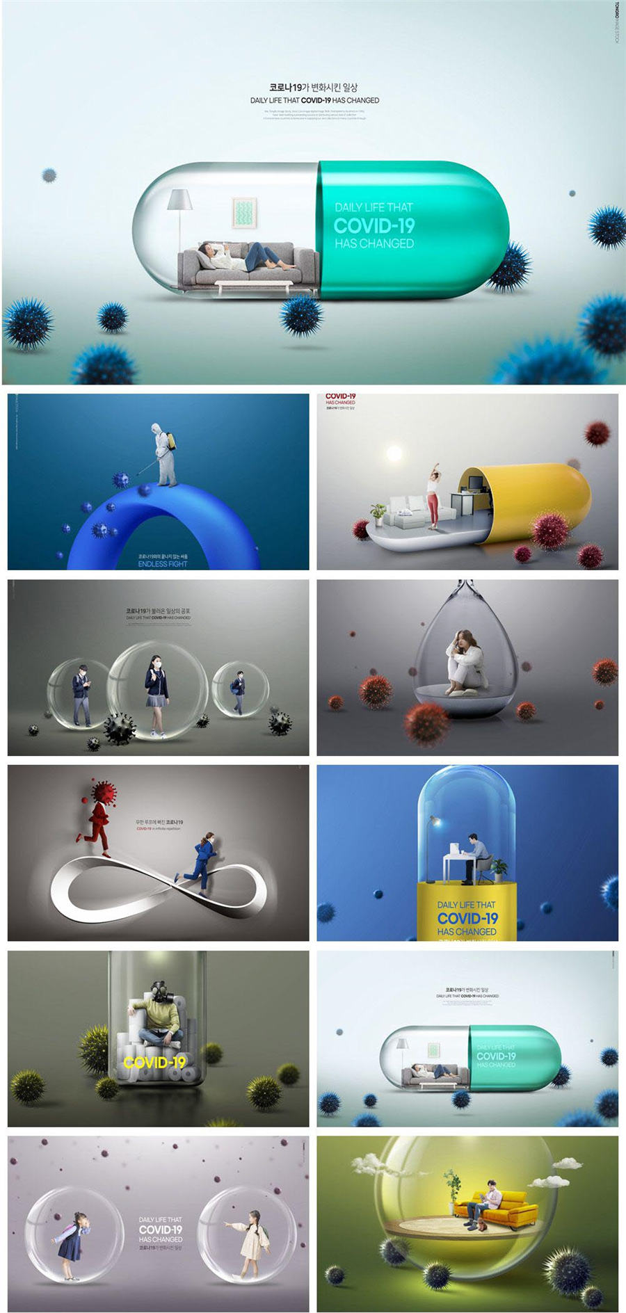 10款医疗生物科技药品病毒细菌传染病隔离PSD素材