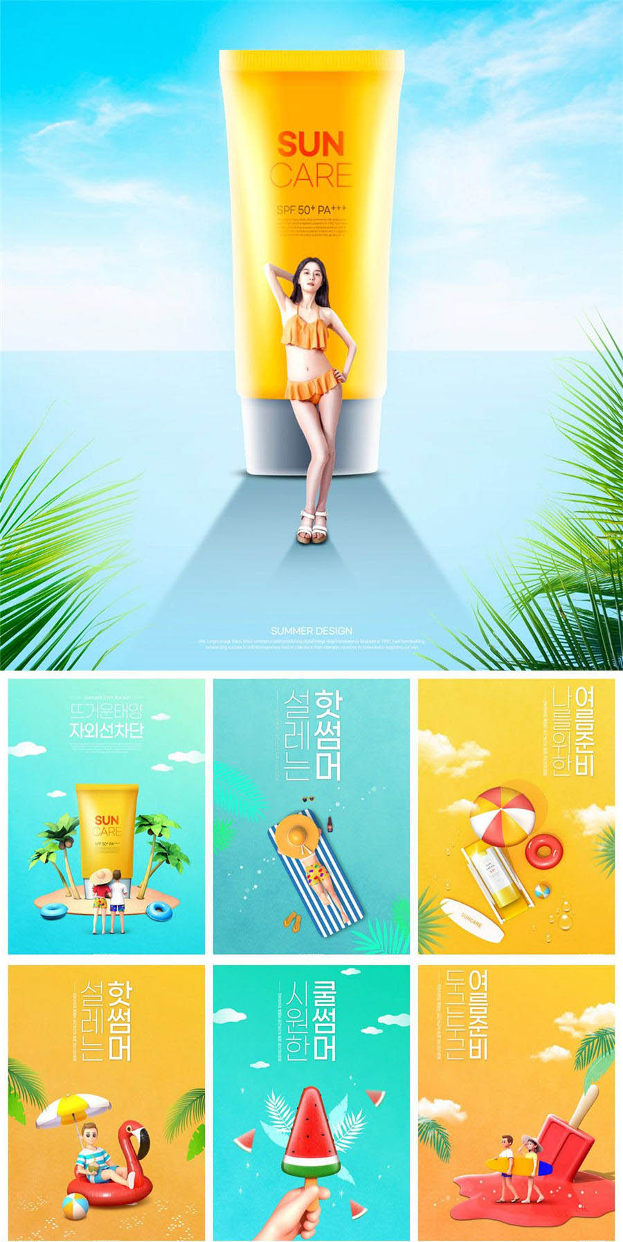 夏日防晒霜保养护肤化妆品旅游度假创意元素海报模板素材PSD设计