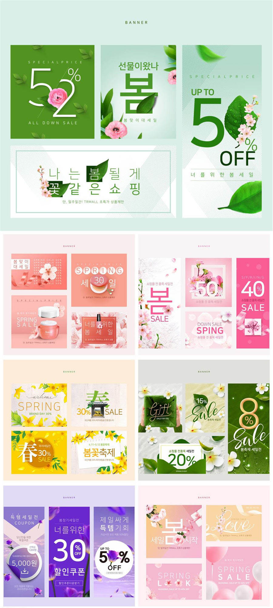 7款花朵植物小清新手机网页模板PSD素材