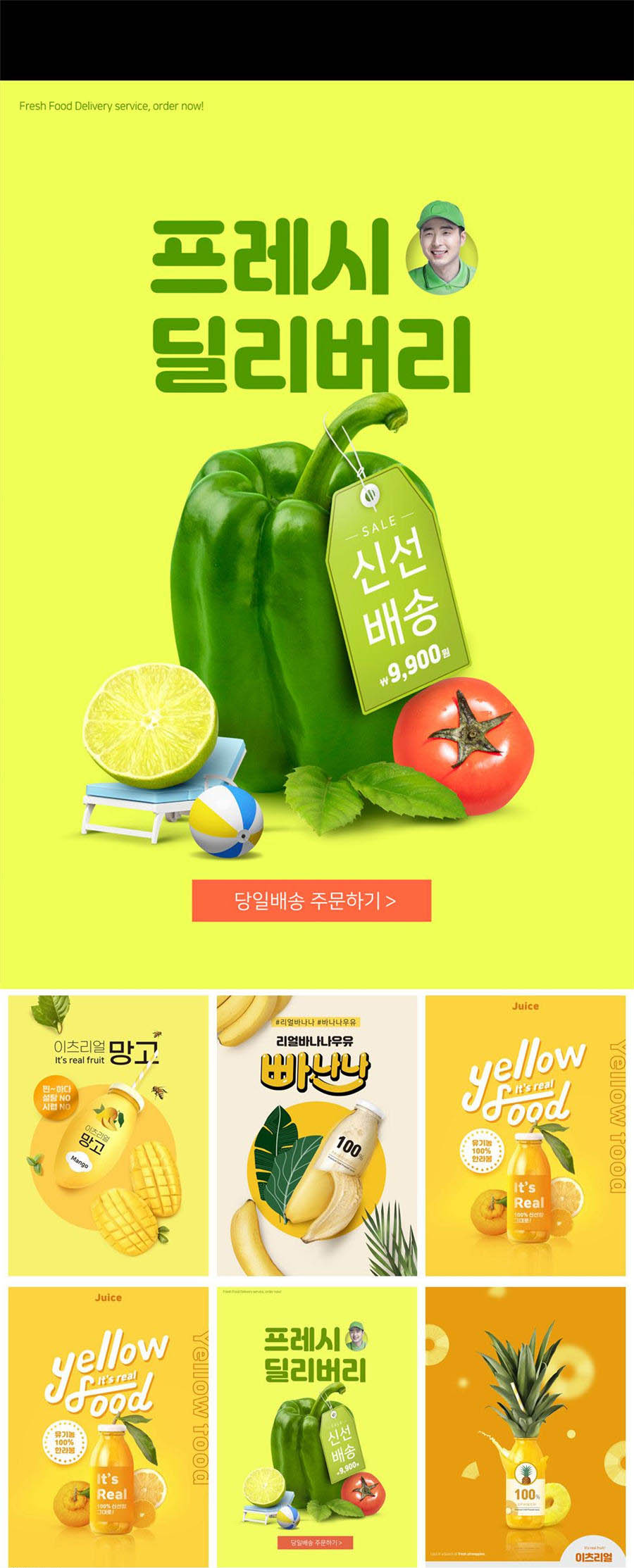 水果蔬菜果汁香蕉辣椒沃柑菠萝芒果创意PSD元素海报模板素材设计
