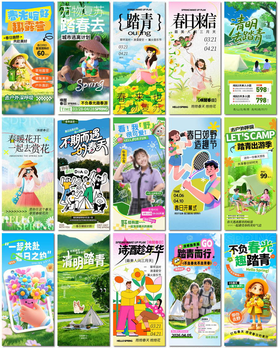 春日踏青郊游清明旅行春天赏花户外露营PSD海报设计元素材模板