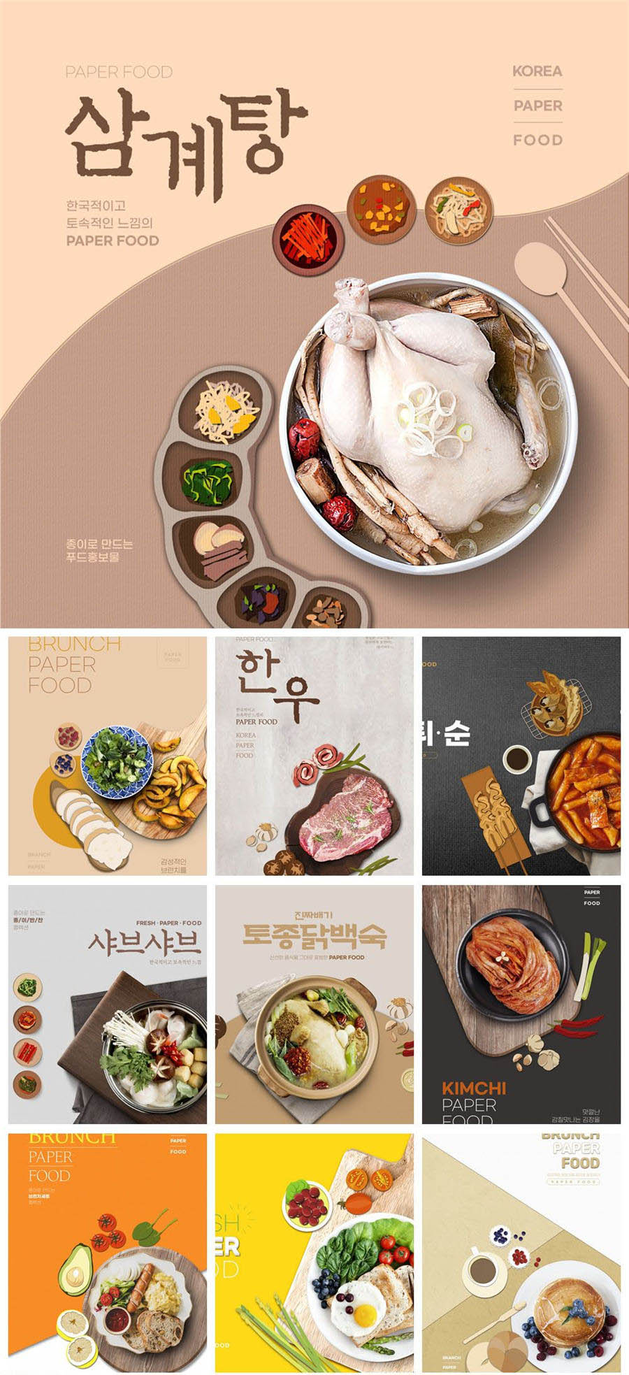 餐饮美食韩国料理年糕泡菜肥牛肉煲创意元素海报PSD模板素材设计