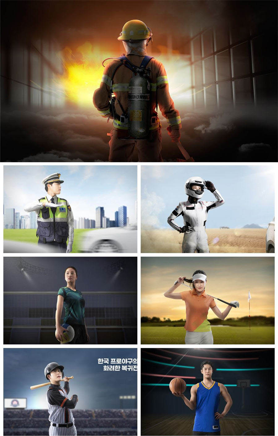 职业人物棒球棒球消防员车手运动员创意元素海报模板PSD素材设计