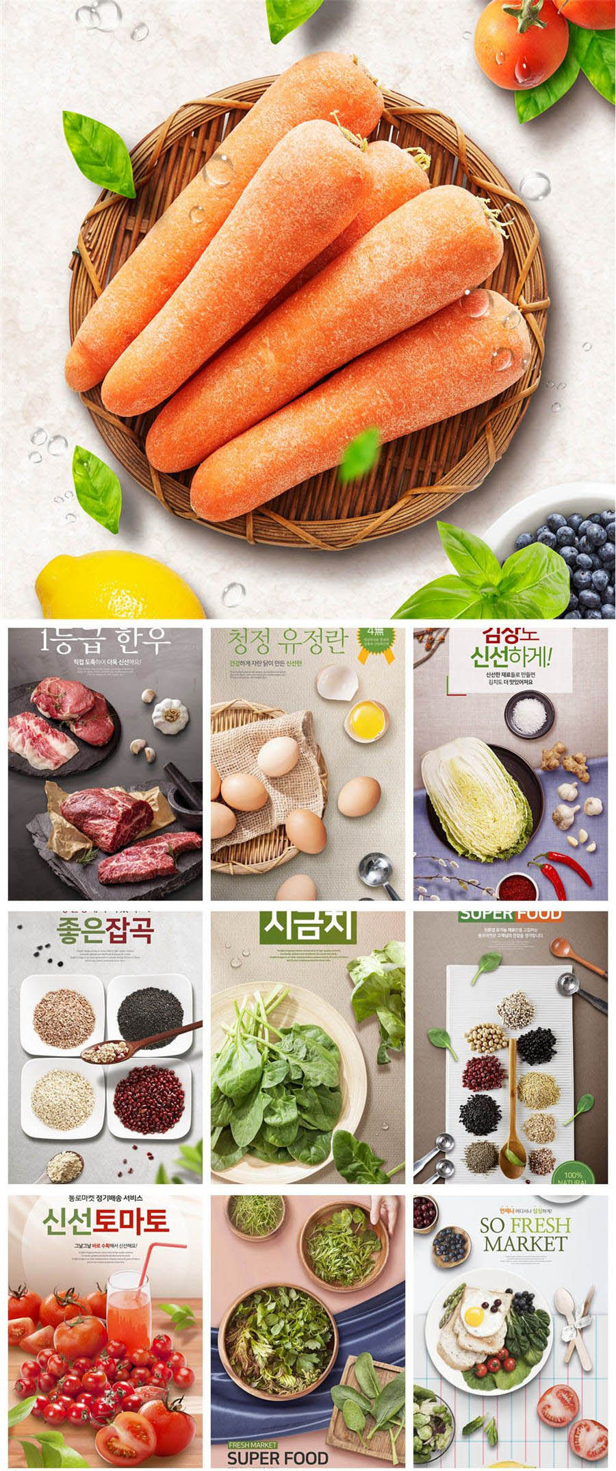 蔬菜农产品鸡蛋肉类沙拉五谷杂粮番茄创意元素海报模板素材PSD设计