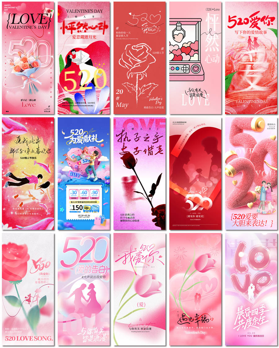 520情人节心动表白告白季情侣爱情爱心玫瑰PSD海报设计元素材模板