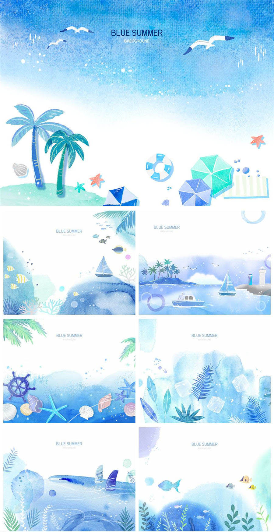 7款水彩夏日卡通插画PSD素材