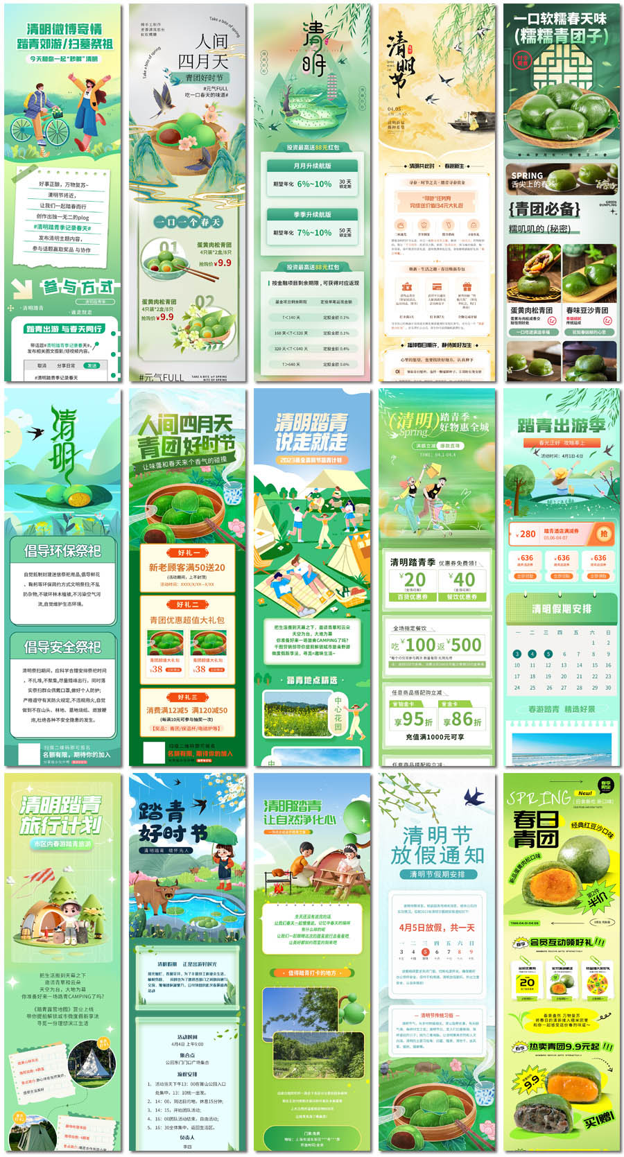 清明节踏青活动青团手机营销长图电商节日PSD海报设计元素材模板