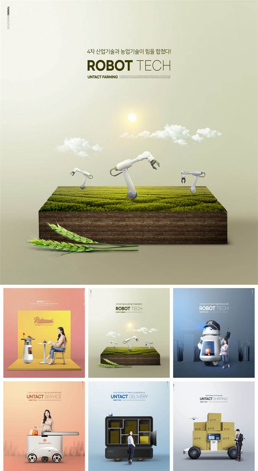 人工智能AI机器人配送运输科技未来创意元素海报PSD模板素材设计