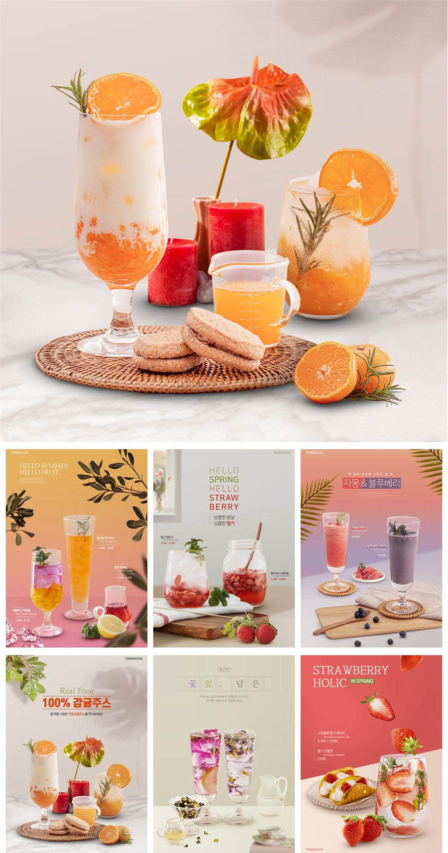 奶茶果汁冷饮冰淇淋奶昔果茶饮料创意元素海报模板PSD素材设计