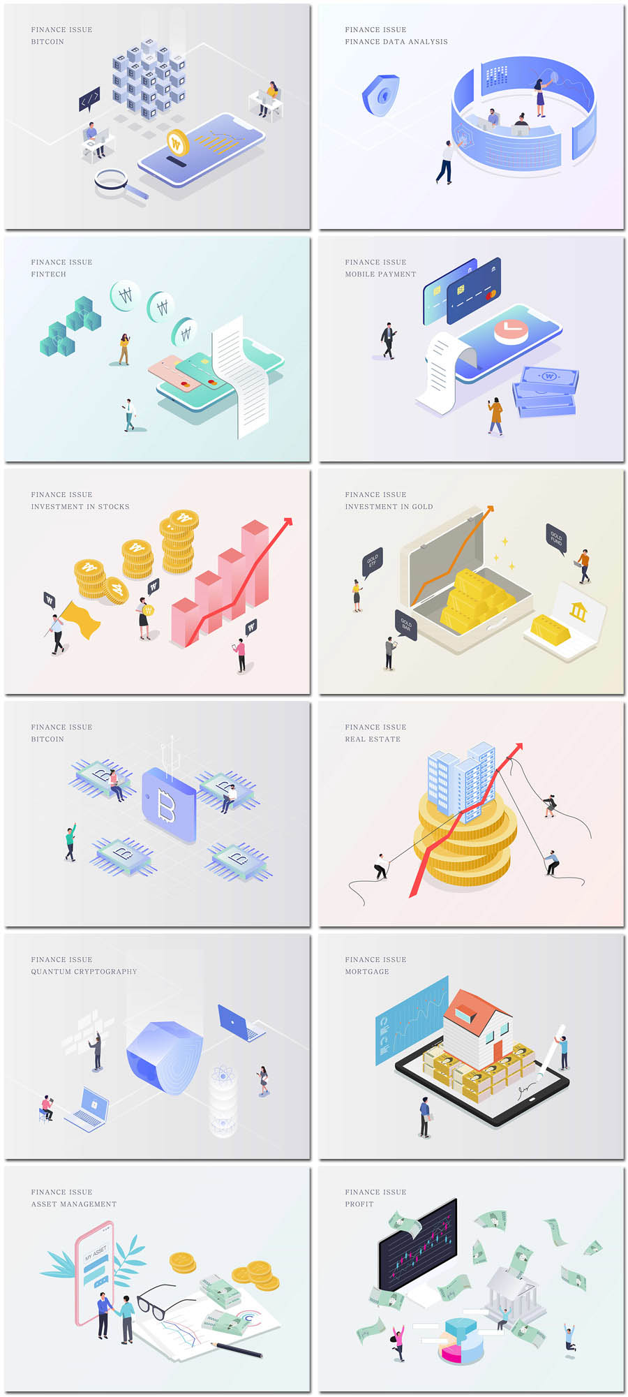 2.5D等距立体风格金融服务银行投资理财矢量插图插画设计模板素材